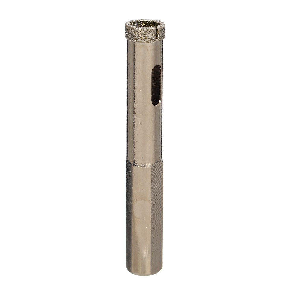 Применяется для безударного сверления отверстий в керамической плитке, керамограните, стекле, кирпиче и бетоне. Трехгранный хвостовик. При работе с твердыми породами рекомендуется использовать для начала работы сверло меньшего диаметра. Запрещено работать в ударном режиме и без охлаждения водой. Необходимо ограничивать скорость подачи и частоту оборотов во избежание перегрева коронки. Материал: инструментальная сталь, рабочая часть с агломерированными синтетическими алмазами.