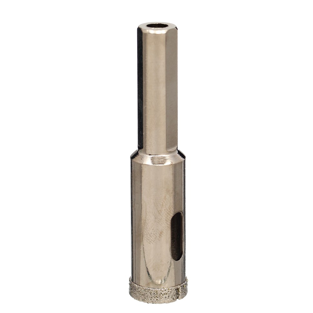 Применяется для безударного сверления отверстий в керамической плитке, керамограните, стекле, кирпиче и бетоне. Трехгранный хвостовик. При работе с твердыми породами рекомендуется использовать для начала работы сверло меньшего диаметра. Запрещено работать в ударном режиме и без охлаждения водой. Необходимо ограничивать скорость подачи и частоту оборотов во избежание перегрева коронки. Материал: инструментальная сталь, рабочая часть с агломерированными синтетическими алмазами.