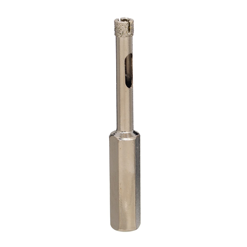 Применяется для безударного сверления отверстий в керамической плитке, керамограните, стекле, кирпиче и бетоне. Трехгранный хвостовик. При работе с твердыми породами рекомендуется использовать для начала работы сверло меньшего диаметра. Запрещено работать в ударном режиме и без охлаждения водой. Необходимо ограничивать скорость подачи и частоту оборотов во избежание перегрева коронки. Материал: инструментальная сталь, рабочая часть с агломерированными синтетическими алмазами.