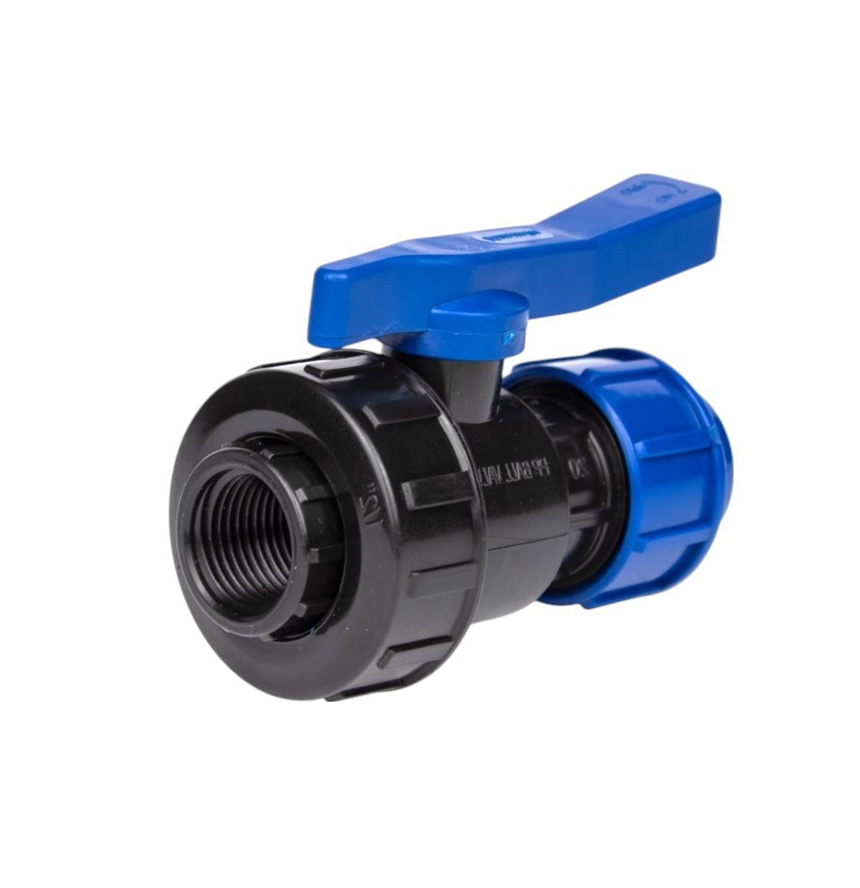 Кран шаровый компрессионный с внутренней резьбой предназначен для регулирования потока воды в трубопроводных системах питьевого и технического водоснабжения жилых и общественных зданий, в системах орошения и полива частных хозяйств и сельскохозяйственных угодий, при строительстве фонтанов и бассейнов. Шаровый кран имеет с одной стороны внутреннюю резьбу, равную стандартному размеру стальных резьб, а с другой стороны цанговый зажим, что позволяет использовать его как переходной элемент трубопровода с возможностью регулирования потока воды. Данный кран может использоваться совместно с другими фитингами как пластиковыми, так и из других материалов.